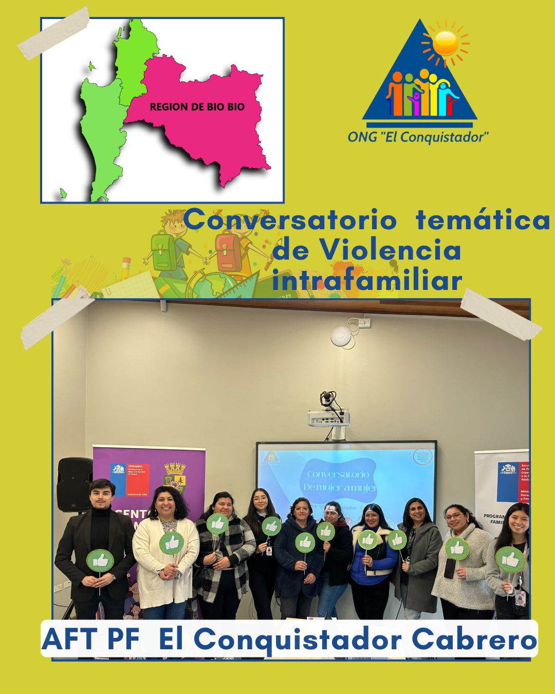Conversatorio realizado por AFT PF “El Conquistador – Cabrero” con el apoyo de profesionales de Sernameg Cabrero (Trabajadora Social, Psicóloga y Abogado), bajo la temática de Violencia intrafamiliar. AFT PF “El Conquistador – Cabrero”…