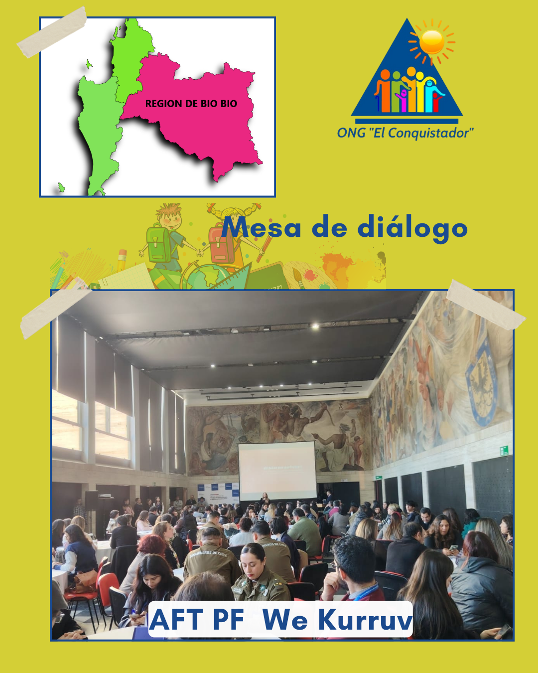 Referente de participación del programa de Acompañamiento Familiar Territorial y de Prevención Focalizada “We kurruv” y la adolescente Paz, directora del consejo asesor regional, con fecha 25 de agosto del 2025 participaron en una mesa de diálogo desarrollada por el Servicio de Protección Especializada en la Niñez y Adolescencia en la Gobernación Regional de Concepción, instancia que reunió a autoridades y actores relevantes con el objetivo de fortalecer la articulación interinstitucional y avanzar hacia una mejor protección y garantía de los derechos de niños, niñas y adolescentes.
