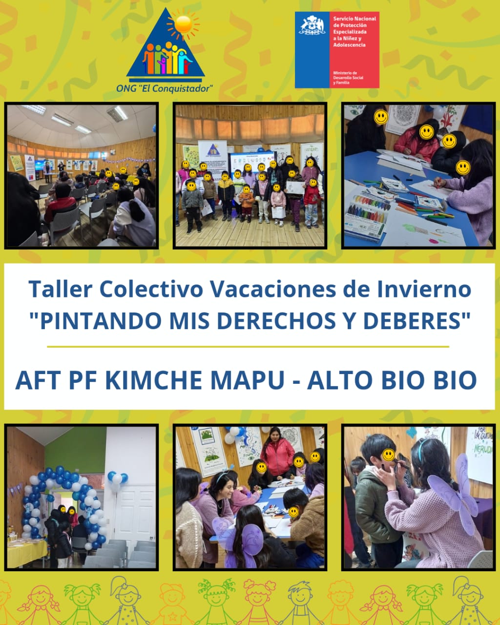 El programa AFT PF Kimche Mapu de la comuna de Alto Biobío llevó a cabo durante la temporada de invierno el taller colectivo denominado “Pintando mis derechos y deberes”, desarrollado por el equipo de proyecto en las dependencias de la misma iniciativa.
